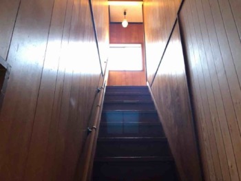 階段も廊下同様に化粧板仕様からクロス仕様に