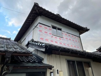 既存断熱材は全撤去です⇒取り急ぎ養生を