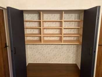 クローゼットの内部はサロンに使用されるにあたり可動棚を設置させていただきました