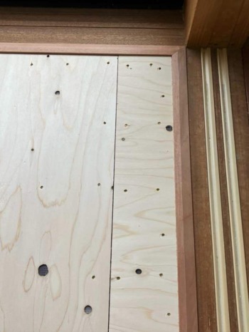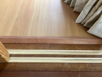 和室は畳を撤去し木下地を組み合板をはり、段差ができる部分は木材でスロープ状に加工した部材を取り付けます