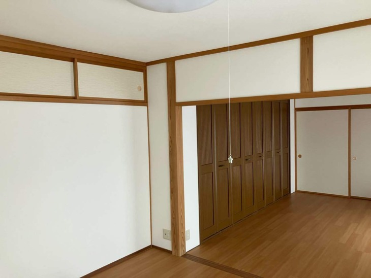 和室と洋室の床が同じフロアタイルで張ったため統一感のある雰囲気になりました