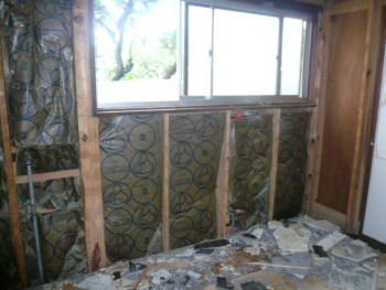 キッチン接地面には下地補強の為 合板(コンパネ)を施工します