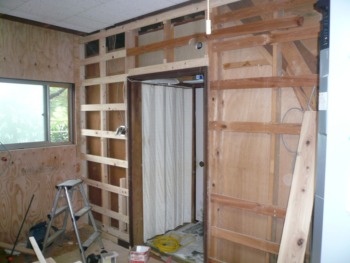 同じく システム収納接地面も合板を施工してから石膏ボードを施工します