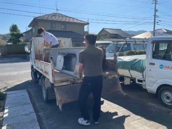 撤去したシステムキッチンとレンジフードは2t車に積み込みます