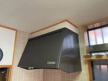 既存の下がり壁を活かして既存のレンジフードとほぼ同サイズのお掃除ラクラク シロッコファンレンジフードをご採用いただきました