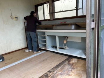 既存のキッチンを解体します。