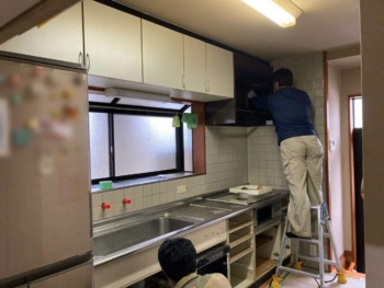 既存のプロペラファンを取り外し、水栓金具も撤去し止水します。