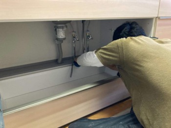 給水・給湯・排水管を接続し通電確認をして、取付完了です