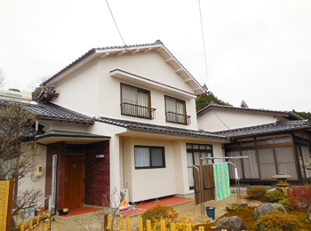 | 施工後です。劣化による色落ちは改善され、ナノコンポジットwできれいで長持ちする外壁になりました。施工前よりもお家が明るく清潔な印象になりました。 | お施主様からは「価格も安く、スタッフさんの人柄も良く、気持ちよく工事してくださり満足です。」とのお言葉をいただくことができました。 |