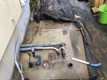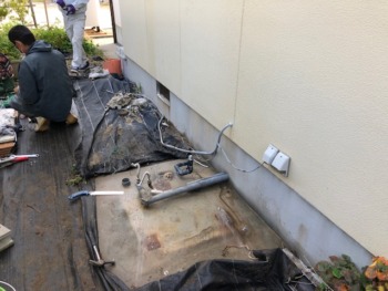 土間に埋設してある配管が変形していたのでハツリ後修繕いたしました