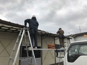 | お客様のご要望 | 波板が古くなり強風で飛んでいきそうなので何とかしてほしい・・というご要望でした |