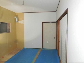 クロスを貼る前に溝や穴をパテで埋めます。 貼る面を平にする事でクロスがうまく貼れます