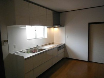 | ご提案内容 | 流し台からシステムキッチン+既存の広い窓スペース内壁新設で吊戸棚設置&通風タイプの勝手口ドアでドアを閉めていてもキッチン空間の空気の入れ替えも行えるようにご提案致しました。 |