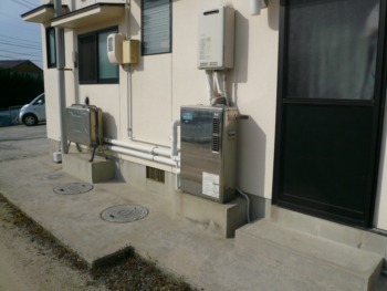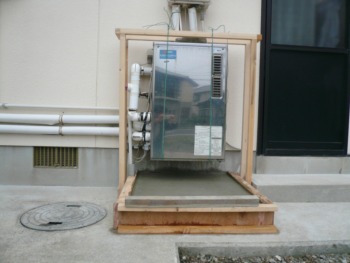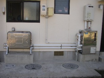 ガス/石油給湯器+オイルタンクが基礎上に設置されている状態でした