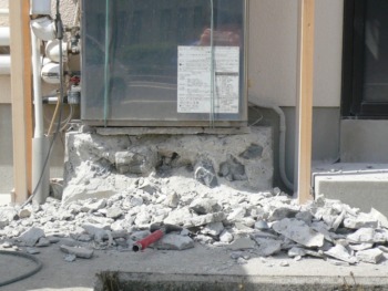 エコキュート本体設置の為に既存の基礎をハツリます