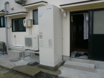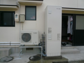 左にヒートポンプユニット、右に 貯湯ユニット(370ℓ)を設置して完了です