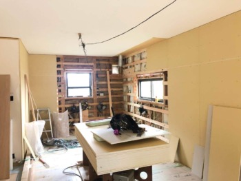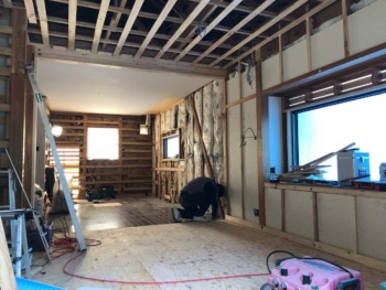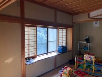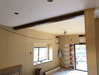柱を撤去して梁で新たに補強して木部塗装を行います