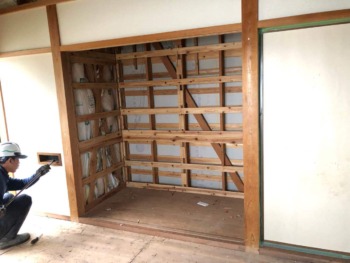 押入れは正面の壁も撤去て筋交いは補強し直します