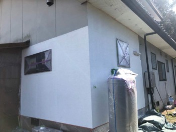 外壁はまずは下塗りから⇒既存の外壁色に調色した塗料で仕上げます