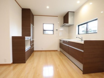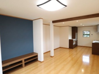 | 使用商材 | システムキッチン:LIXILシエラ 窓:YKK AP”エピソードneo” 建具:LIXIL上吊り建具 テレビ&シューズ収納:南海プライウッド |