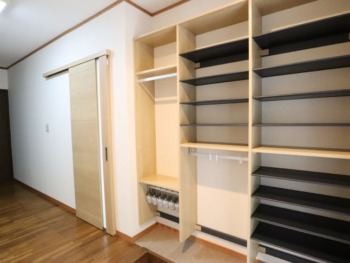既存勝手口部は無くして壁面収納を設置させていただきました