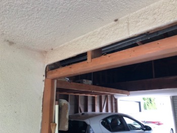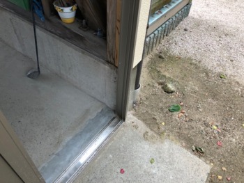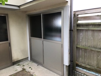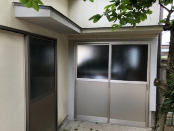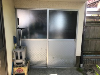 | お客様のご要望 | ①経年劣化したアルミ下部パネルの劣化により破損している引き違いサッシを何とかしてほしい ②7年前に増築し倉庫出入口の庇が水が回って剥がれてきているので何とかしてほしい 以上の内容でお困りでした |