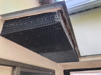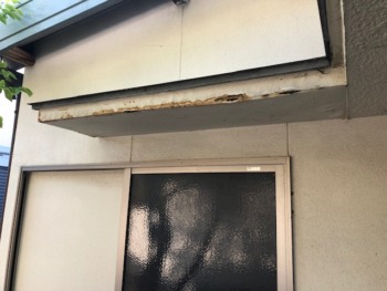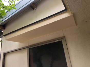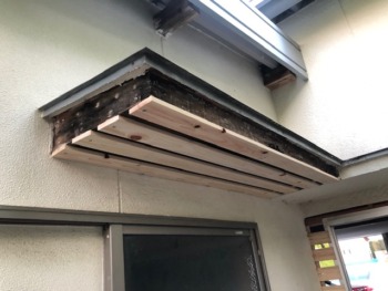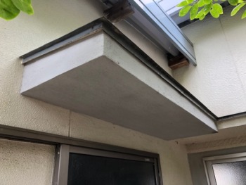 弾性塗料で塗装されていたため水分が庇内で溜まっていたため
