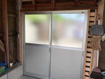 車庫の引き違い戸をリニューアル