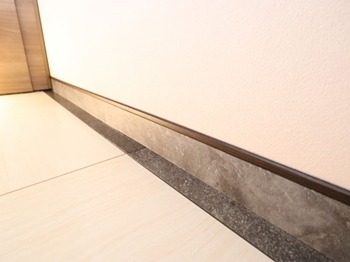 巾木はフロアタイルをカットして見切り材を加工して施工しています