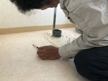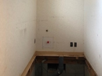 床撤去完了給水管を移設してコンセント位置を開口します