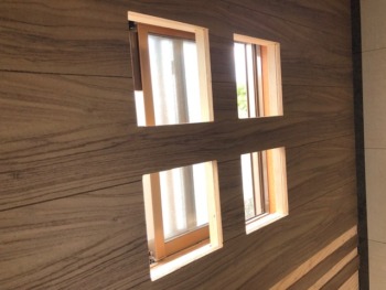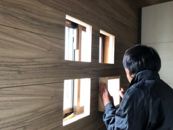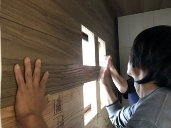 カットした化粧板を慎重に施工していきます