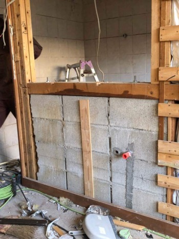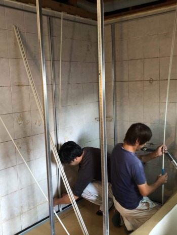 浴室内と脱場の間仕切り壁、脱衣場の壁を解体します。