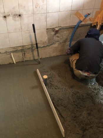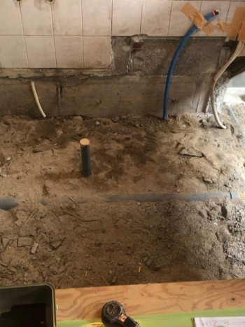 給水・給湯、排水管を引き直し、土間打ちをおこないます。