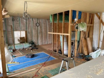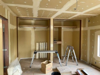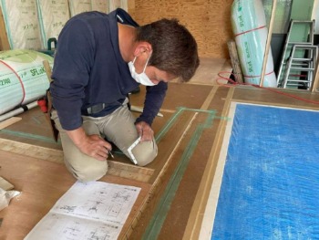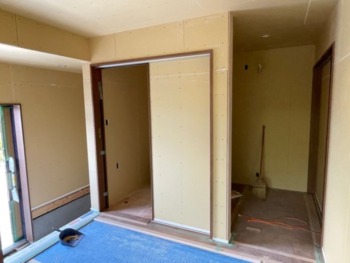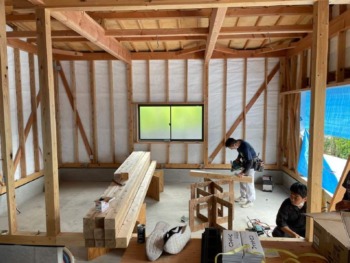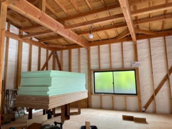 床組みが終わったら間仕切壁を施工していきます