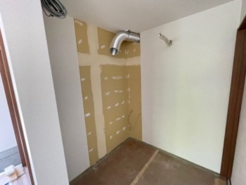 ミニキッチンスペースを残してクロス工事完了です