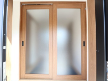 玄関引き戸を開けると開口枠ビッチリの引き違い建具設置させていただきました