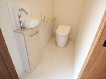 玄関上がるとすぐに上質なトイレ空間があります