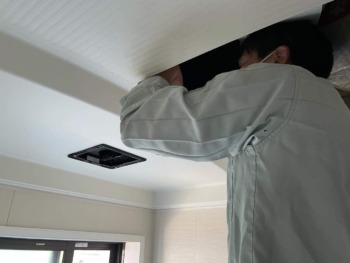 既存と同サイズの換気扇を設置後配線の再接続を行います