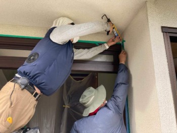 ドア枠まわりにシーリングを打ち込みます。