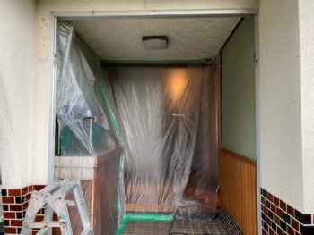 室内に汚れが入らないように養生します。