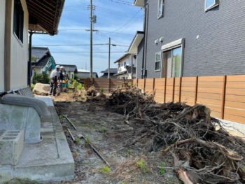 雑草の多かった北側は真砂土を敷き 整地いたします