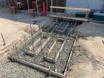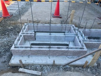 ベースコンクリート打設後 養生期間を経て脱枠後 化粧ブロックを施工していきます