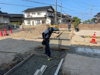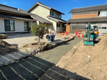 駐車場と家屋側の境界となる化粧ブロックを施工していきます