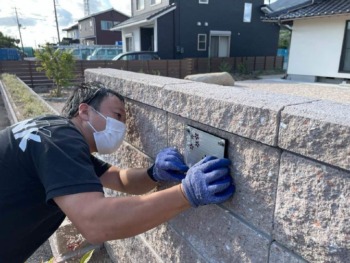 2級建築大工技能士 角が表札を取り付けて完了です☆
