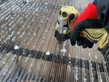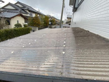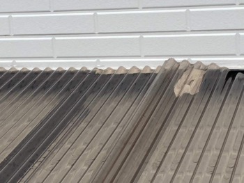 雪で屋根が破損しお客さまが応急処置をしていましたが修繕しないといけない状況でした。