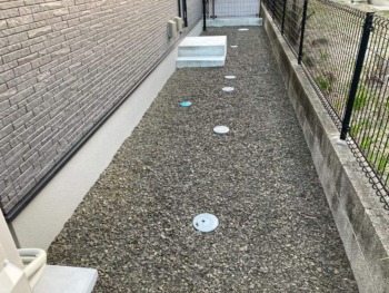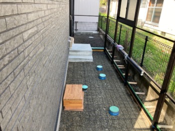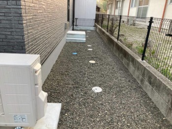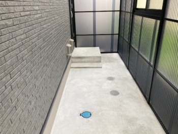 | ご提案内容 | 下が砂利でしたので使い勝手を考えてコンクリートを打設ご希望されました。 ストックヤードは勝手口を囲むように比較的長いタイプのものをご提案させていただきました。 物干し金物を設置もさせていただきました。 |
