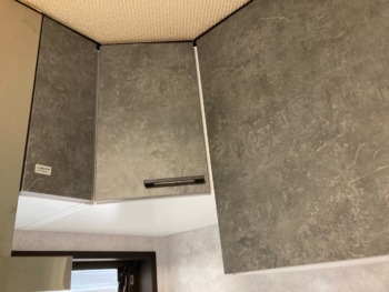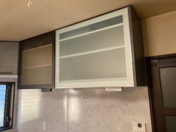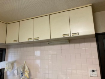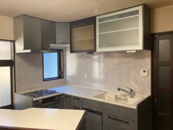 シンクの上には吊戸棚が左側の換気扇まで付いています。