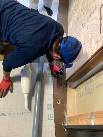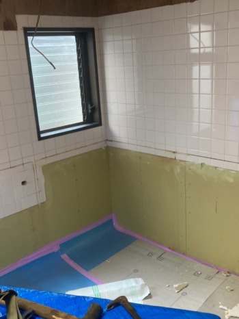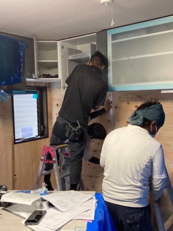 タイル撤去後は板の貼付けです。