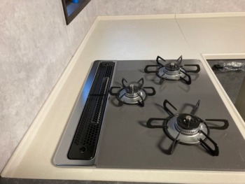 2口置き型コンロからはめ込み型の3口コンロへ施工。調理の効率があがります。