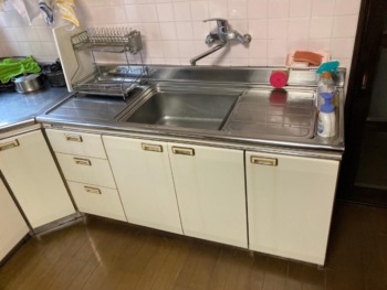 既存のL字型キッチンです。長い間大切に使用されていました。